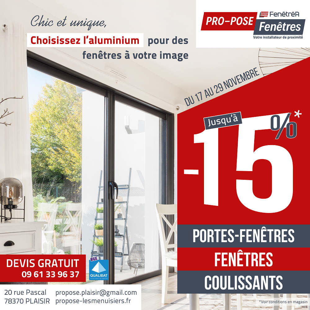 Du 26 mai au 7 juin 2025, profitez de -15 % sur toutes les portes d’entrée chez PRO-POSE Fenêtres à Plaisir !