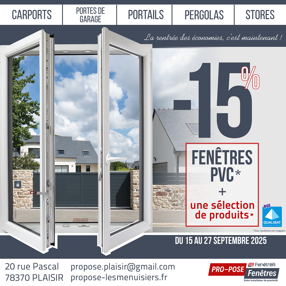 Du 26 mai au 7 juin 2025, profitez de -15 % sur toutes les portes d’entrée chez PRO-POSE Fenêtres à Plaisir !
